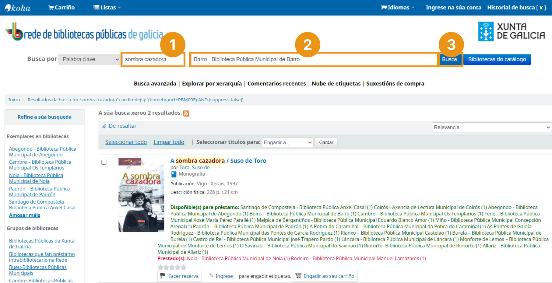 - Escoller a biblioteca : Barro- Biblioteca Pública Municipal de Barro.